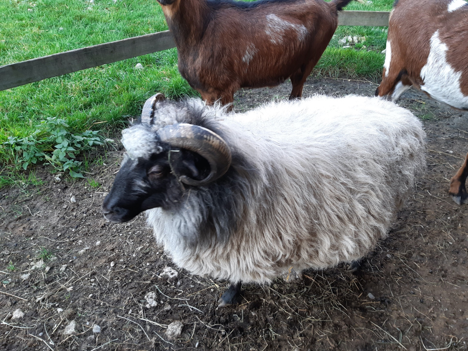 Herr Rossi ist unser kleinster Schafbock, der aber beeindruckende Hörner hat. Er kam 2014 auf die Welt.
